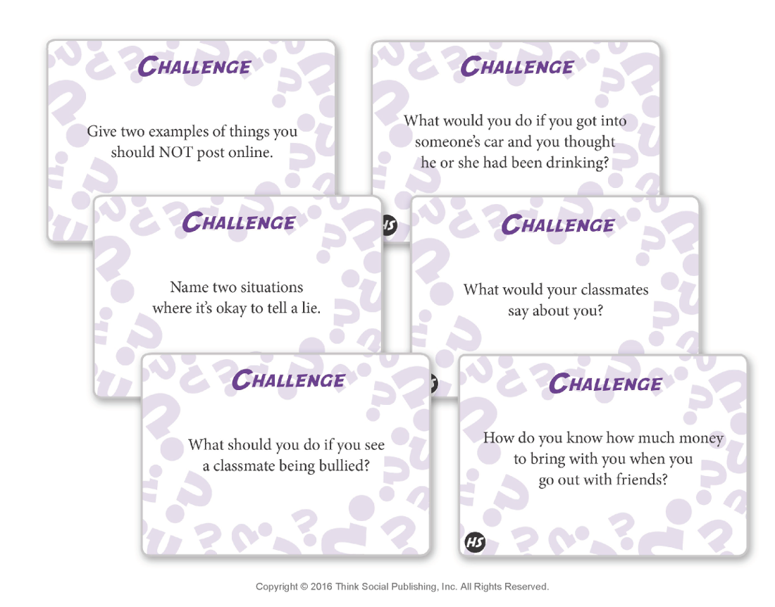 Double your teens’ fun and social learning with this expansion pack featuring 200 new Prompt cards and 100 new Challenge cards that extend play with fresh, age-specific social situations and topics—and are useful for play with savvy social learners who have memorized responses to the original cards in the game! This product is an add-on to the original game Should I? or Shouldn’t I? Revised Edition for Teens for players ages 12—18. (Game sold separately.) Social learners love playing this game so much they requested more cards—and we listened!