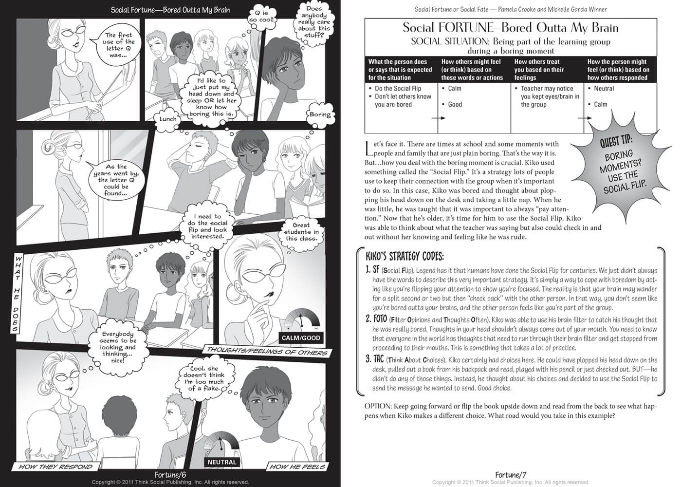 “With Social Fortune or Social Fate, Pamela Crooke and Michelle Garcia Winner promote the idea of social competence (not just social skills) in a way that incorporates research in the areas of visual learning and cognitive behavioral interventions. In addition, their use of the graphic novel as a platform to translate social concepts into complex behavioral repertoires takes a popular medium and uses it in a, potentially, very productive way.”