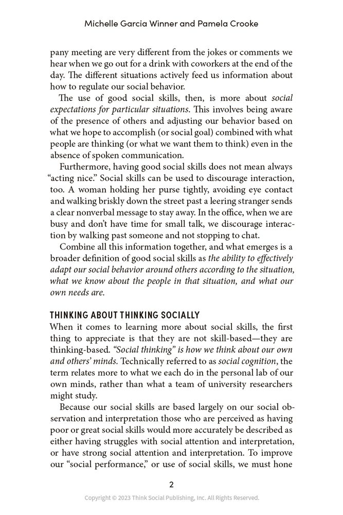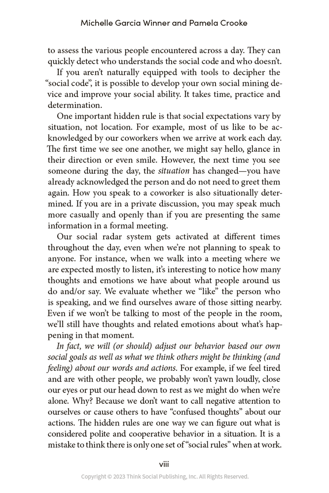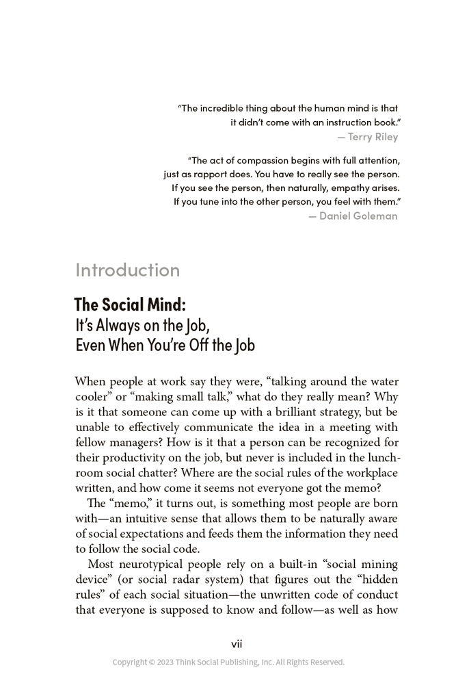 “Social Thinking at Work by Michelle Garcia Winner and Pamela Crooke is a game changer. This book provides practical advice to every adult whether you are on the Autism Spectrum, Neurotypical (NT), or somewhere in between on how to navigate the social intricacies involved with the workplace. I have long held the opinion that the ability to socialize and get along with people is as important to creating a successful career as being good at your job. Thus, success very often requires a combination of academic intelligence and social intelligence. Social Thinking at Work creates a roadmap for those individuals with weaknesses in social intelligence to `better understand the expectations of the social mind'... I highly recommend this book to anyone that has ever experienced social challenges at work but especially for those adults on the autism spectrum or with known social weaknesses.”